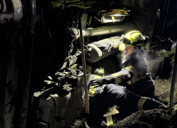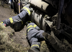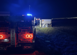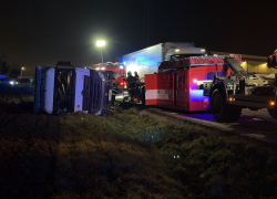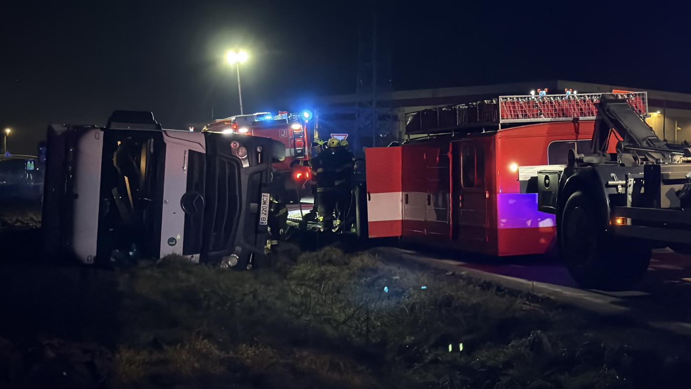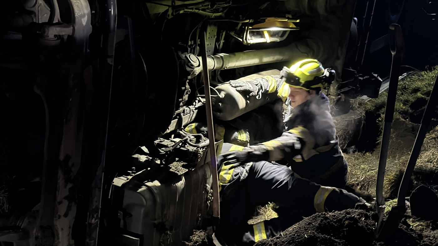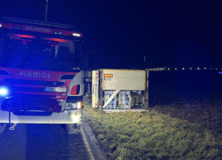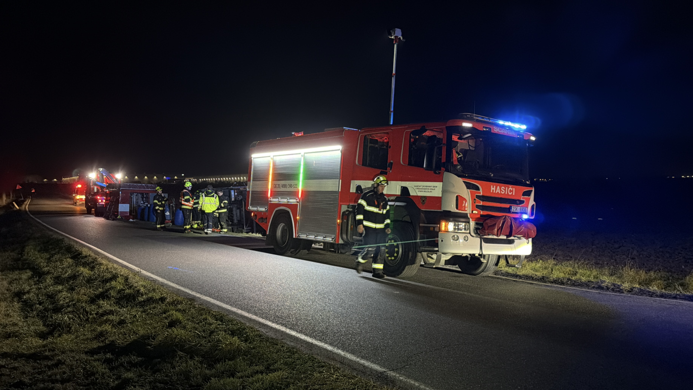 Hasiči ze Staré Boleslavi museli zasahovat u převráceného kamionu na Praze východ