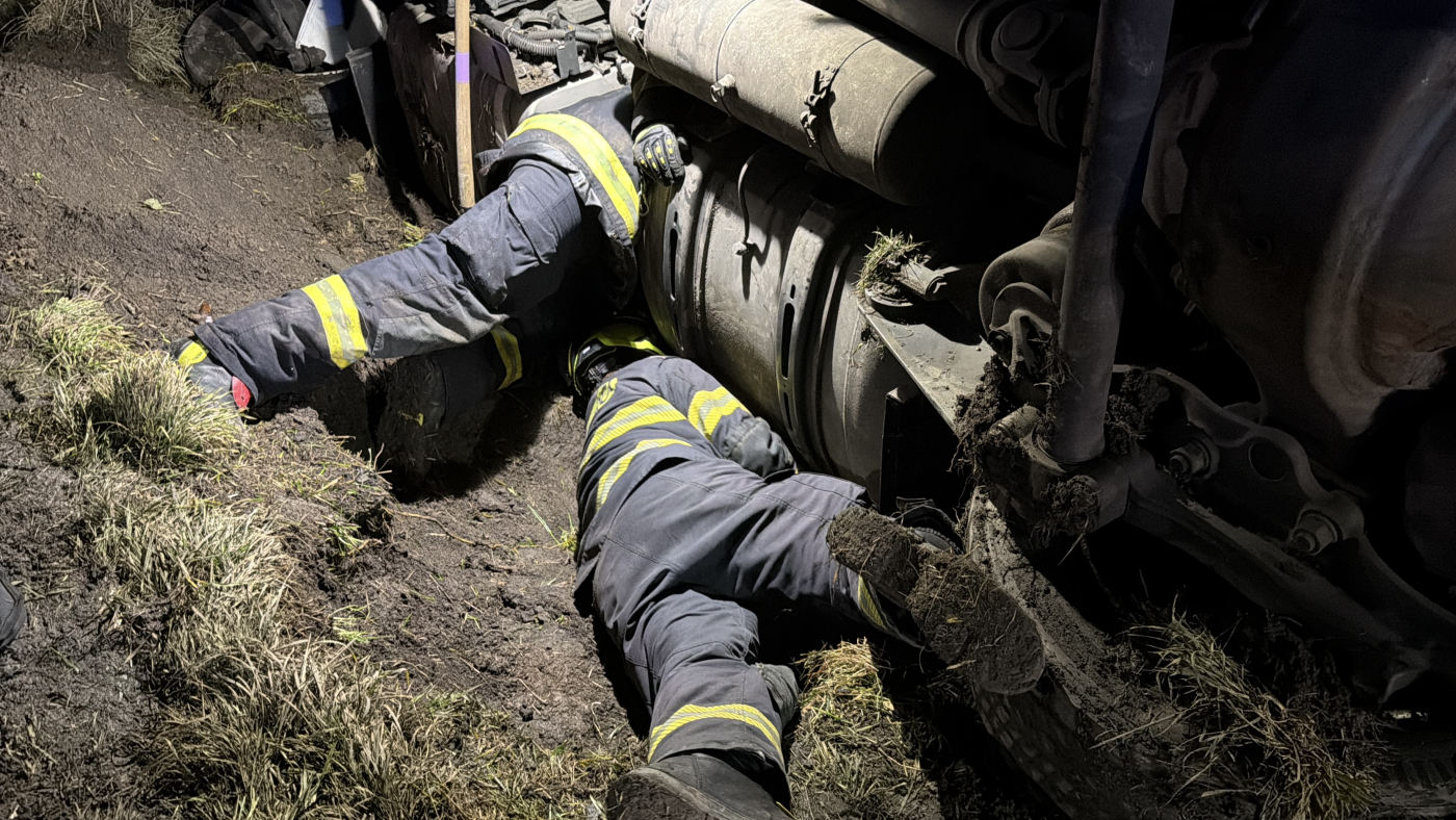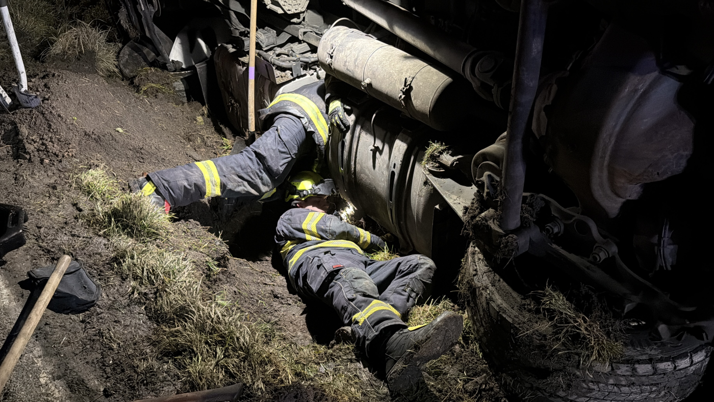 Profesionální hasič ze Staré Boleslavi se na místě potýkali především s únikem pohonných hmot z nádrže ležícího kamionu. Aby se k ní dostali, museli se doslova podkopat pod vozidlo, poškozené místo zajistit a další únik nafty zastavit. Zároveň přijali opatření, aby se látka nedostala do okolního prostředí a kanalizace.