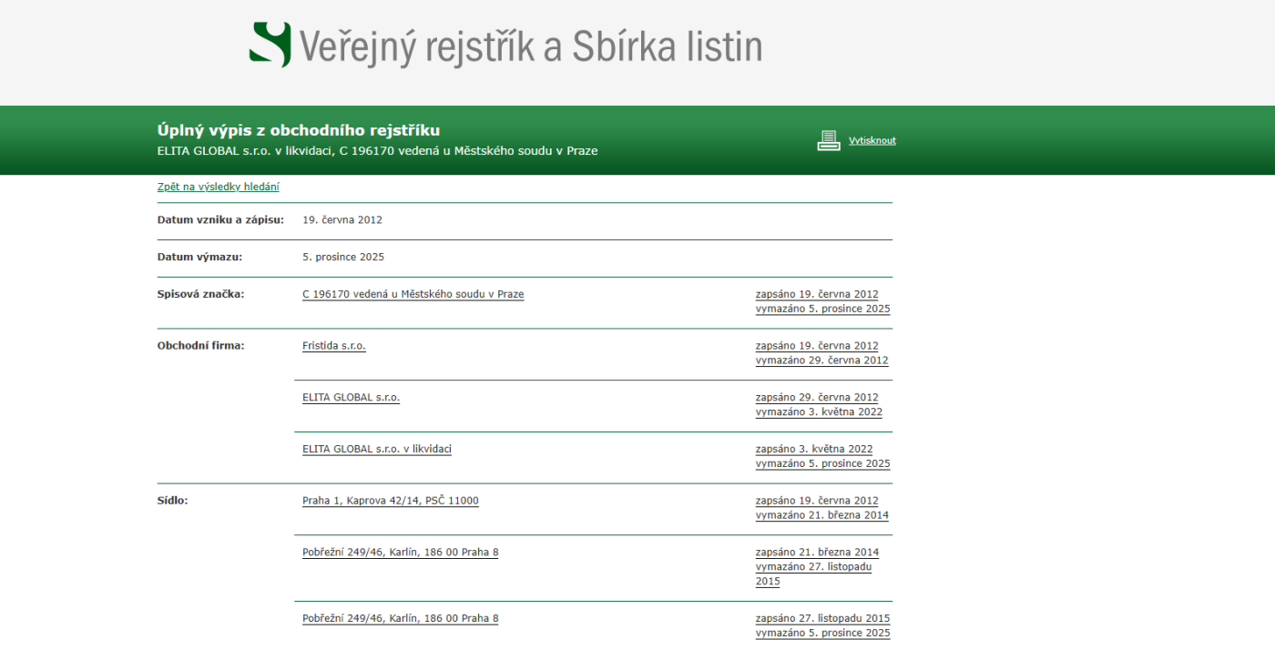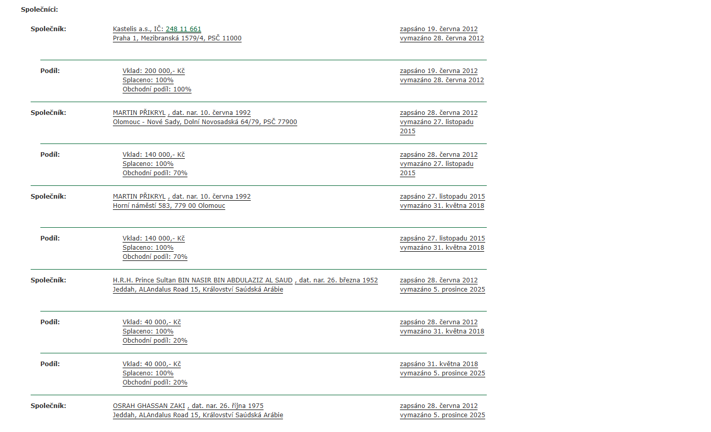 Schemat je ale víc. Energy Dash, firma napojená na americkou společnost z Nevady, kde se majitelé střídají jako na běžícím pásu. České společnosti, americké LLC, údajní zahraniční manažeři, kteří podle registrů vůbec neexistují. Například toto jméno Van den Berg. Jde o fiktivní osobu zapsanou ve veřejných rejstřících americké a britské firmy. Všechny cesty ale vedou k jedinému jménu – Oldřichu Přikrylovi a jeho nejbližším lidem.