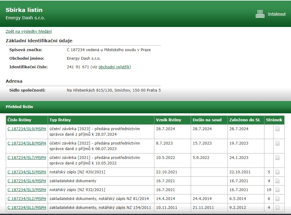Energy Dash a další firmy: Komplexní síť českých a amerických společností (LLC) s údajnými zahraničními manažery, kteří podle registrů neexistují (např. fiktivní jméno Van Den Berg). Všechny cesty vedou k Přikrylovi a jeho blízkým.