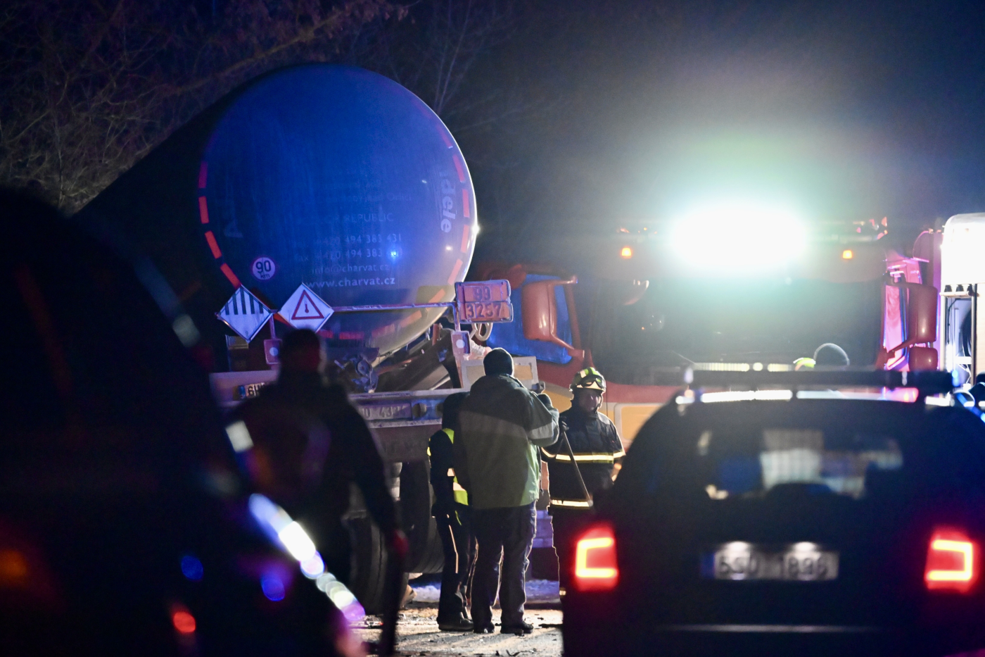 Na místo okamžitě vyjely jednotky hasičů, zdravotnické záchranné služby a policie, provoz na silnici byl v obou směrech zcela zastaven. Hasiči se soustředili na likvidaci požáru osobního vozu a zajištění cisterny s asfaltem, aby nedošlo k úniku či dalšímu vzplanutí.
