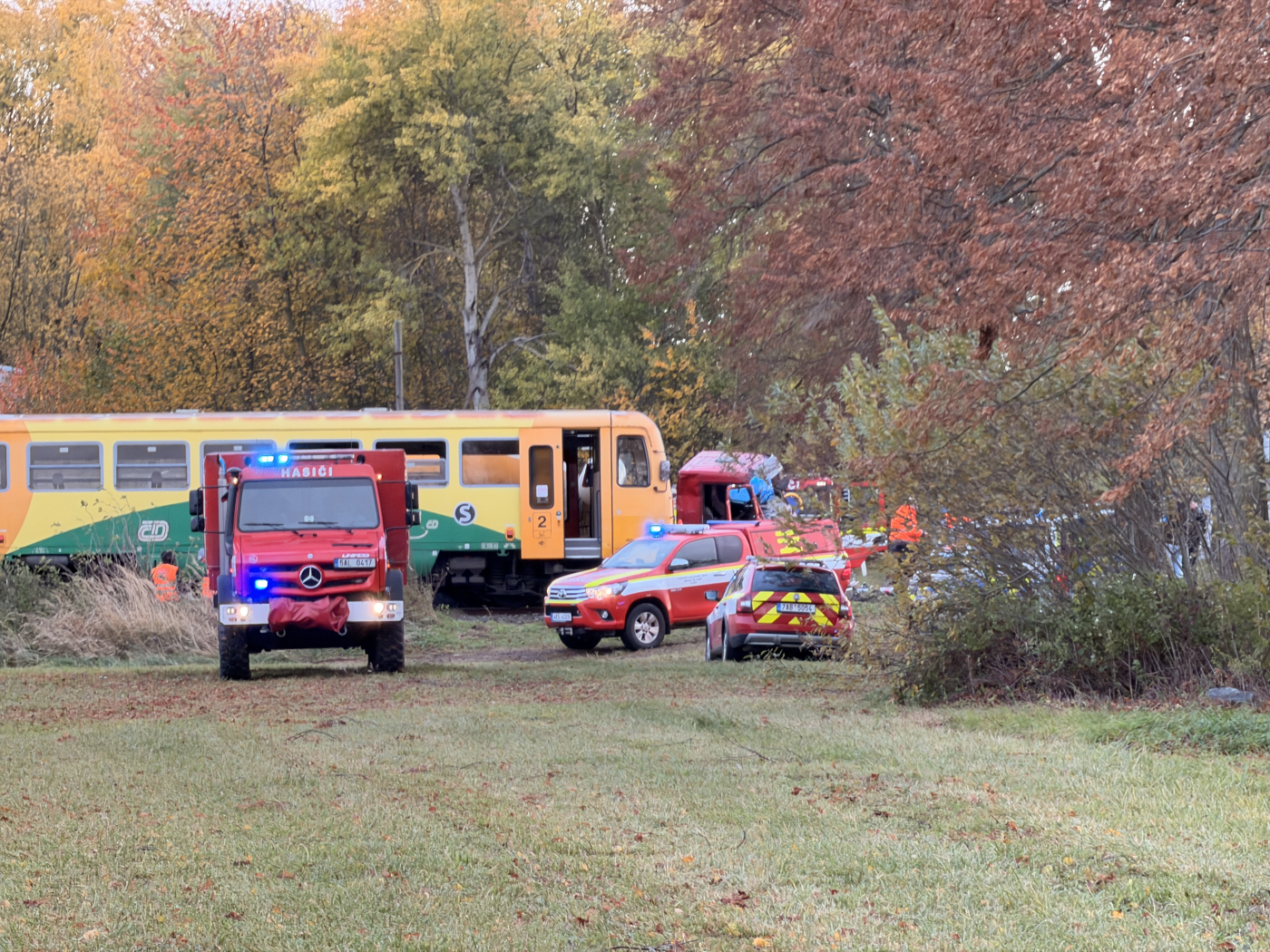 © AKTU.cz, Jiří Forman Na přejezdu v Hudčicích na Příbramsku došlo dnes krátce po 13:40 ke střetu osobního vlaku s nákladním automobilem, po němž souprava vykolejila a zasahovaly všechny složky IZS včetně vrtulníku. Zdravotníci ošetřili nejméně šest zraněných, jednoho ve vážném stavu letecky přepravili do plzeňské nemocnice a provoz na trati byl dočasně přerušen.