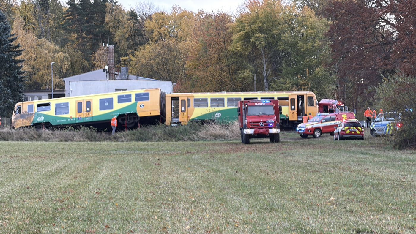Srážka vlaku s náklaďákem v Hudčicích: vykolejení, zranění a uzavřená trať.